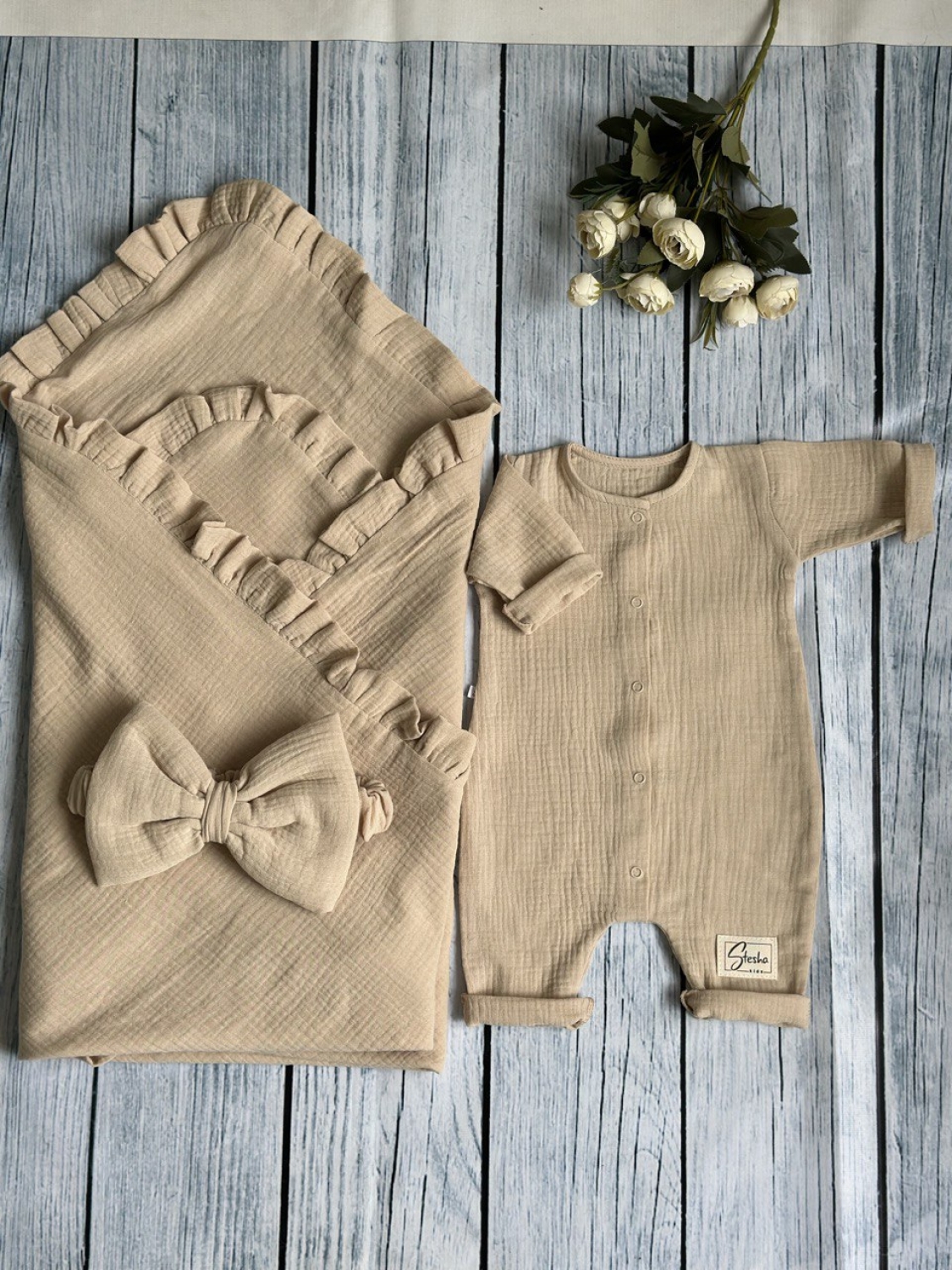 Теги: Купить детские конверты, комбинезон оптом, детские конверты на выписку оптом. 335-К. Комплект из детского комбинезона, р 56 и конверта муслин, хлопок 100% 90/90 см, кофейный цена,отзывы официальный сайт "Стеша Хасавюрт"